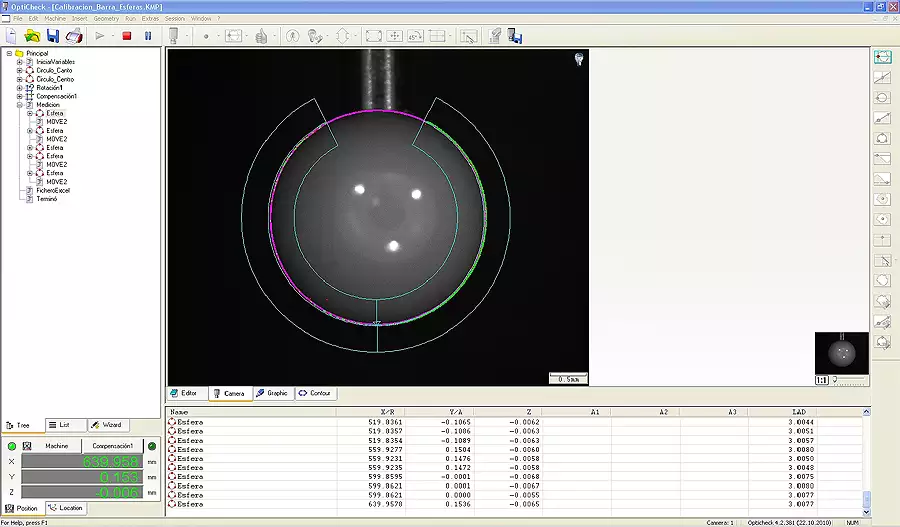 El software avanzado de medición tridimensional Opti-check, desarrollado por la empresa alemana GFM, acepta la entrada de gran variedad de sensores de medición (sistema multi-sensor, cámaras, palpadores, láser, sondas de tª,….) y permite un tratamiento de los datos obtenidos mediante una programación abierta. Es posible su implantación es sistemas de medición fija en sala de medición (MMC) mediante el interface I++ o en dispositivos de medición off-line, mediciones en línea mediante cualquier tipo de captador.